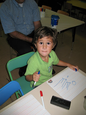 Michael actually started preschool back in January though he only went one day a week. Today was the first day of his new 3 year old class. He will go two mornings a week for three hours. He wasn't happy to go but the teacher said he did fine after we left. When we picked him up he said he had a good day!